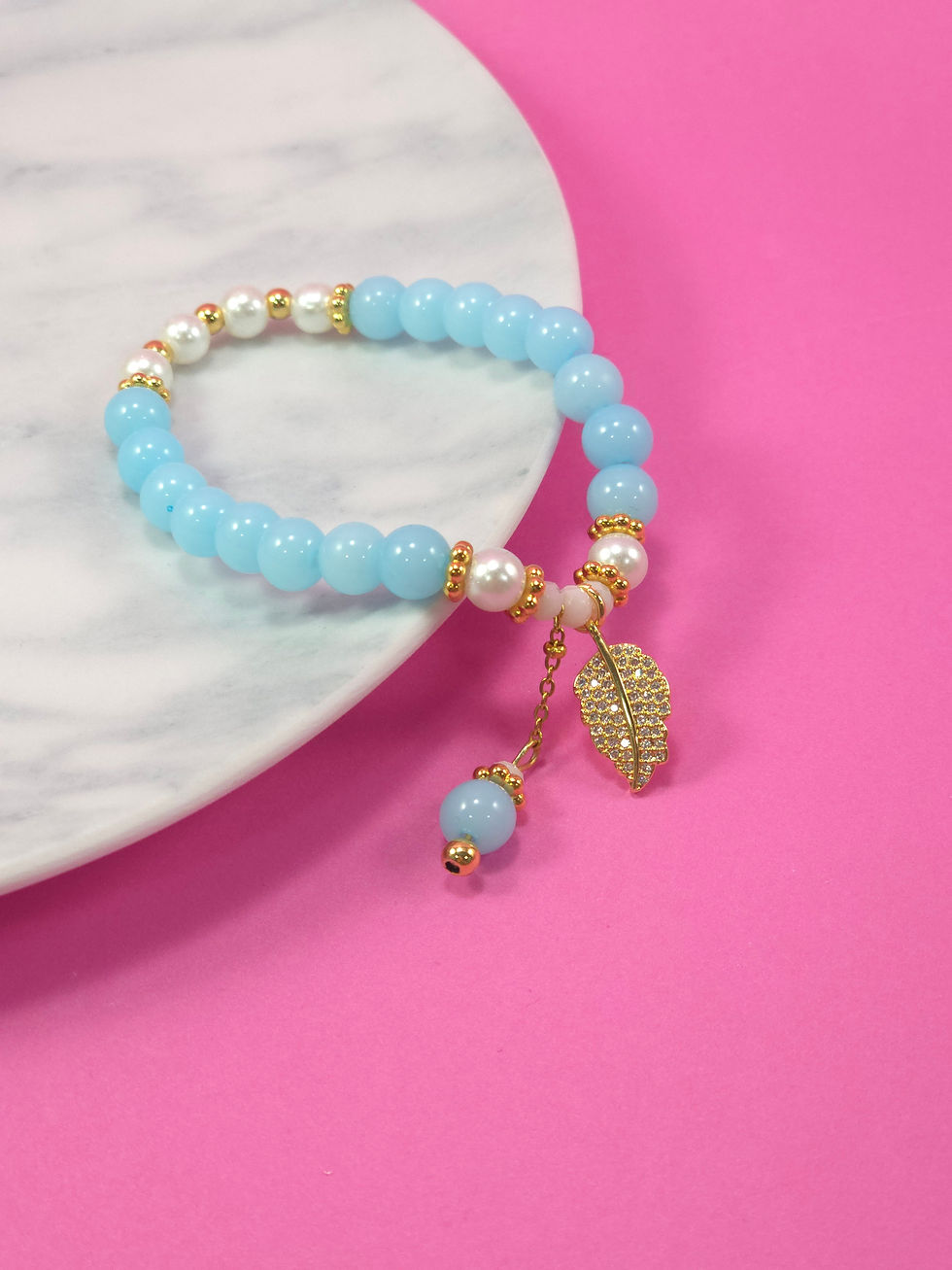 Pulsera cadena dorada con dije de corona con piedra rosada